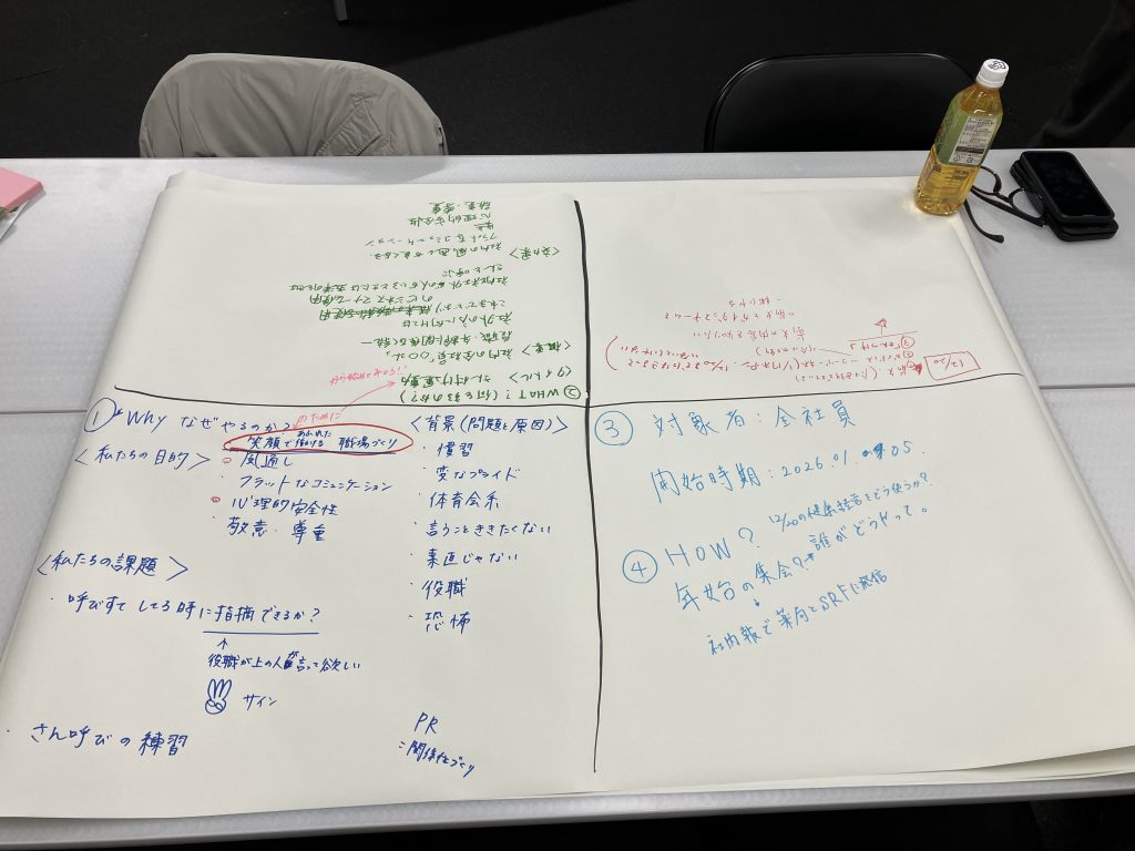 当社では、従業員の心身の健康と組織の持続的な成長を実現するため、「健康経営」の取り組みを積極的に推進しています。 2025年10月18日(土)、健康経営のさらなる推進を目的として、ワールドカフェ形式による健康経営ミーティングを開催しました。 今回... -