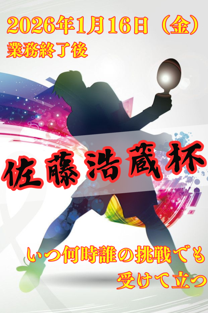 このたび、社内のコミュニケーションの活性化と健康増進を目的に、社内卓球大会を開催することになりました! ⭐佐藤浩蔵杯 卓球大会⭐ 【大会名の由来】 大会名は、総務の佐藤さんのお名前を冠した 「佐藤浩蔵杯 卓球大会🏓」 です。 実は佐藤さんは、ロー...