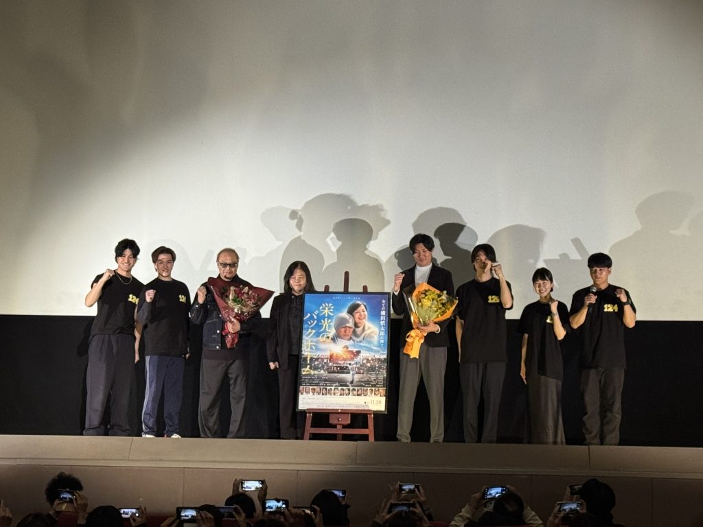 上映後には、秋山純監督や主演の松谷鷹也さんら「チーム秋山」の皆さまによる舞台挨拶も行われ、制作の裏側や福山への思い、そして五洋医療器への感謝の言葉が語られました。